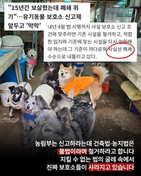 코리안독스 등 전국의 동물보호단체들이 모여 정부의 '민간동물보호시설 신고제'에 대해 반대하는 집회를 열고 제도에 대한 전면 유예 또는 폐지를 촉구할 계획이다.민간 보호소 신고제 개정을 촉구하는 시민 모임 일동은 전국 동물보호단체, 동물복지 활동가 및 민간동물보호시설 관