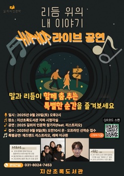 평택시립지산초록도서관은 오는 20일 오후 2시, ‘2025년 길 위의 인문학’ 프로그램의 마지막 순서로 참여자 힙합 라이브 공연 ‘리듬 위의 내 이야기’ 를 개최한다.이번 공연은 문화체육관광부가 주최하고 한국문화예술위원회가 주관하는 ‘길 위의 인문학’ 공모사업