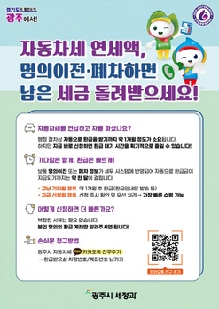 경기 광주시는 자동차세 환급금을 간편하게 돌려받는 ‘자동차세 환급까지 바로 신청’ 서비스를 상시 운영한다고 17일 밝혔다.기존에는 차량 이전이나 말소 이후 행정 시스템에 관련 정보가 반영돼 환급이 이뤄지기까지 약 1개월에서 최대 60일가량이 걸렸다. 또한, 환
