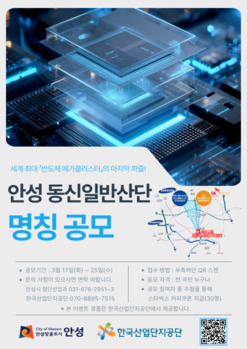 안성시와 한국산업단지공단이 ‘안성 동신일반산업단지’의 새로운 명칭을 찾기위해 전 국민을 대상으로 아이디어 공모전을 개최한다.이번 공모는 반도체 소재·부품·장비(소부장) 특화단지로서의 정체성을 확립하고 미래지향적인 산업단지 브랜드를 구축하기 위한 것이다.공모 기간은 17