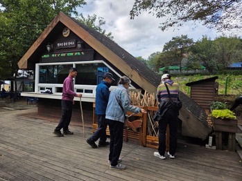 수원시, 광교산 입구에 폐목재 재활용 지팡이 비치