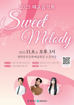 평택시 송탄보건소는 임산부와 가족의 정서적 안정과 행복한 출산환경 조성을 위해 오는 11월8일 ‘2025 태교음악회 Sweet Melody’를 개최한다.행사는 평택시 북부문화예술회관에서 오후 3시부터 약 1시간30분 동안 예비부모 70쌍을 대상으로 무료로 운영한다.&n