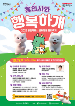 용인특례시는 지역 내 반려인들을 위한 문화축제 ‘2025 용인시와 행복하개’를 19일 용인시실내체육관 앞 천연잔디광장에서 개최한다.이번 행사는 반려동물과 시민이 함께 어울리며 공존할 수 있는 문화를 확산하고, 인식 개선을 통해 유기동물 발생을 줄이기 위해 마련했다.&n