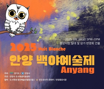 경기 안양시가 전통시장에서 즐기는 청년들의 전시와 공연을 준비했다.안양시는 오는 26일 오후 5시부터 11시까지 만안구 안양중앙시장에서 청년들이 즐길 수 있는 '안양 백야예술제(Nuit Blanche Anyang)'를 개최한다고 19일 밝혔다.안양 백야예술제는 전통시장