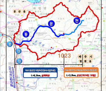 경기도가 파주시 동문천의 홍수 대응 능력을 강화하기 위한 '파주 동문천 지방하천 정비사업'을 시작한다.27일 경기도에 따르면 정비사업은 파주시 문산읍 선유리에서 법원읍 동문리에 이르는 동문천 일원 총 연장 6.1km 구간의 하천을 정비하는 것이다.구체적으로는 △축제공(