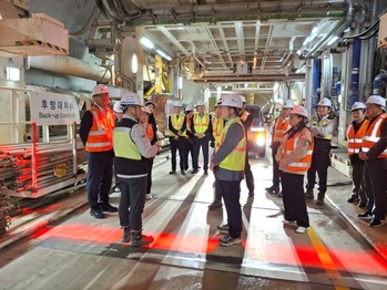파주시는 지난 8일 관내 대형 건설 현장인 ‘수도권 제2순환 고속도로(김포~파주, 2공구)’를 방문해 공사 추진 상황을 점검하고 철저한 공정관리와 안전 관리를 당부했다고 밝혔다.한강터널 홍보관(파주시 방화리길 82-40)에서 진행된 현장 방문에는 최병갑 파주시 부시장