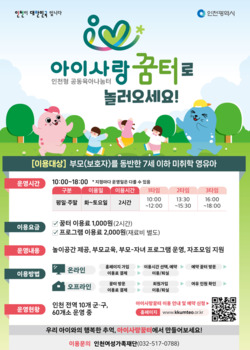 인천시는 전국 최초로 조성한 ‘아이사랑꿈터’의 올해 이용자가 34만 명을 넘었다고 15일 밝혔다.시에 따르면 2020년 운영 첫해 3700명이었던 이용자 수는 매년 크게 증가해, 현재 누적 회원 4만 8000명이 이용하고 있다.현재 인천시 10개 군·구에 총 60개소가