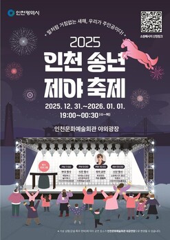 인천에서 시민들과 함께 한 해를 마무리하고 새해를 맞이하는 송년제야 축제가 열린다.인천시는 오는 31일 남동구 인천문화예술회관 야외광장에서 ‘2025 인천 송년제야 축제’를 개최한다고 21일 밝혔다.송년제야 축제는 시민들이 참여하고 체감할 수 있는 연말연시 대표 축제로