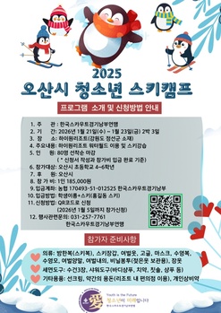 오산시는 겨울방학을 맞아 관내 초등학교 4~6학년 학생을 대상으로 체험형 야외활동 기회를 제공하기 위해 ‘2026년 오산시 청소년 겨울 스키캠프’를 운영한다.이번 스키캠프는 오산시 보조금 지원을 통해 2023년 이후 추진하는 사업으로, 당시 캠프에 참여한 청소년들의 높