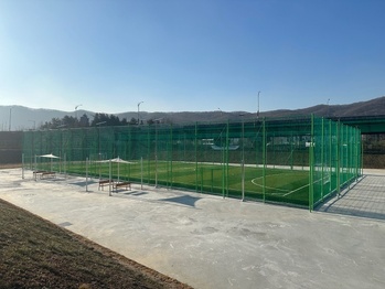 성남시 판교 대장저류지가 생활체육·여가 공간으로 변모했다.성남시는 체육시설 확충 사업의 하나로 대장동 666번지 저류지 내 유휴 부지 총 9439㎡에 풋살장 1면과 농구장 2면, 다목적광장을 조성했다고 13일 밝혔다.이번 사업은 지난해 4월부터 총 사업비 6억9000만