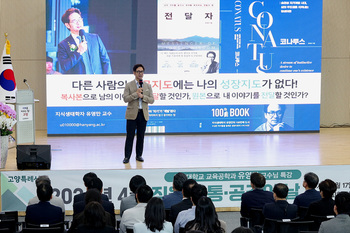 고양특례시는 17일 시청 백석별관 대강당에서 ‘4월 직원 소통·공감의 날’을 개최했다.시는 이날 한양대학교 교육공학과 유영만 교수를 초청해 ‘다른 사람의 성공지도에서는 나의 성장지도가 없다’를 주제로 명사 특강이 진행됐다. 유영만 교수는 본인의 저서 ‘코나투스