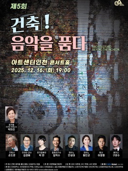 ‘건축!음악을품다협회’와 비영리민간단체 ‘꿈꾸는 마을’이 공동 주최하는 ‘건축! 음악을 품다’ 음악회가 오는 16일 오후 7시 인천 송도국제도시 아트센터인천 콘서트홀에서 열린다.음악회는 인천시, 인천경제자유구역청, 인천국제공항공사, 인천관광공사, 인천도시공사