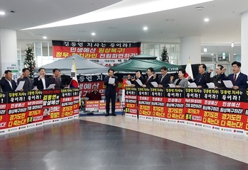 '단식투쟁' 경기도의회 국힘 "김동연 지사 칼국수 먹방, 부아 치밀어"