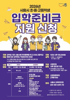 시흥시는 올해부터 관내 초·중·고교 입학자녀가정에 입학준비금을 10만 원씩을 지원한다. 이번 지원은 도서·문구류 등을 새로 마련해야 하는 신입생가정의 경제적 부담을 줄여주고, 교육 기본권을 강화하고자 추진했다. 지원 대상은 입학일(3월3일) 기준 시흥