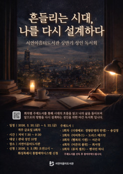 화성 서연이음터도서관은 오는 3월20일부터 5월22일까지 총 5회에 걸쳐 관내 성인을 대상으로 상반기 독서회 ‘흔들리는 시대, 나를 다시 설계하다’를 운영한다.프로그램은 급변하는 사회환경 속에서 시대의 흐름을 읽고 개인의 삶을 성찰하며 스스로의 가치와 방향을 재정립할