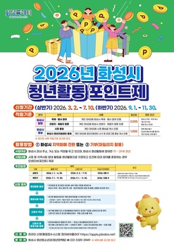 화성특례시는 청년의 시정 참여 확대와 지역사회 활동을 지원하기 위해 오는 3월2일부터 ‘2026년 청년활동포인트제’를 시행한다.청년활동포인트제는 시정 홍보와 지역사회 참여 활동을 청년활동으로 지정하고 참여 사실을 증빙하면 포인트를 지급하는 제도다. 화성시는 지