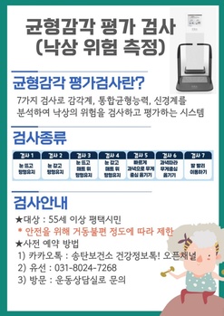 평택 송탄보건소는 ‘5060여성 건강이음서비스’ 참가자를 대상으로 균형감각 측정을 실시해 낙상 위험도를 평가한다.여성호르몬 변화기를 겪는 중년 여성의 경우 골밀도 감소로 인해 낙상 시 골절 위험이 높아 가벼운 사고에도 큰 부상으로 이어질 수 있어 예방이 중요하다.균형감