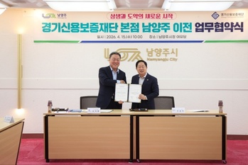 경기신용보증재단(이사장 시석중)은 15일 남양주시청에서 남양주시와 ‘경기북부 균형발전을 위한 공동협력 업무협약’을 체결했다.이번 협약은 경기도 균형발전을 위한 재단 본점의 남양주 이전에 따른 협력을 주요 골자로 추진됐다.구체적으로는 남양주시 내 재단 이전 공간 마련을