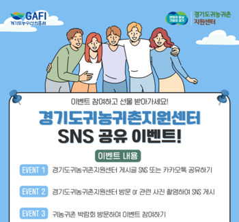 경기도농수산진흥원은 SNS 이벤트로 귀농·귀촌에 대한 관심을 이끈다.경기도와 농진원이 운영하는 경기도귀농귀촌지원센터는 오는 11월까지 귀농·귀촌에 관심 있는 도시민을 대상으로 온라인 SNS 이벤트를 진행한다.이벤트는 △센터 홍보 게시글 공유 △센터 및 프로그램 관련 인