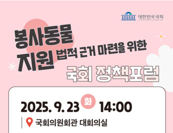 '봉사동물'을 지원하는 법적 근거 마련을 위한 국회 정책포럼이 열린다.사단법인 지속가능발전연구소 마침표는 국가와 사회를 위해 헌신해온 군견·경찰견·탐지견·구조견 등 '봉사동물'의 처우 개선과 은퇴 이후 지원체계 강화를 위한 법적 기반 마련을 논의하는 '봉사동물 지원 법