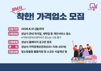 성남시, 착한가격업소 모집… 맞춤형 인센티브 제공