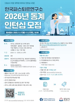 성남시, 한국파스퇴르연구소 동계 대학생 인턴십 모집