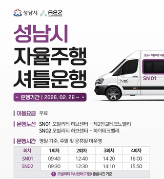 성남시, 26일부터 자율주행 셔틀 무료 운행