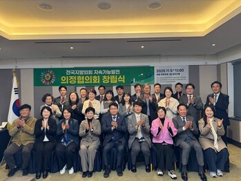 유승분 인천시의회 행정안전위원회 제1부위원장이 지난 5일 화성시에서 열린 ‘2025 대한민국 지속가능발전대회’에서 전국지방의회 지속가능발전 의정협의회의 초대 공동회장으로 선임됐다고 6일 밝혔다. 이 협의회는 전국 기초·광역 지방의회 의원들이 자발적으로 모여 △