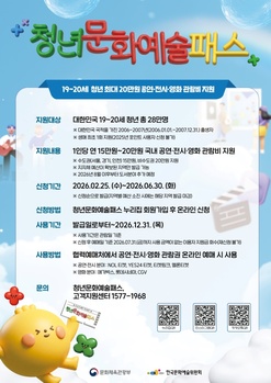 평택시는 청년들이 다양한 문화·예술을 일상에서 부담없이 경험할 수 있도록 ‘청년문화예술패스’사업을 확대 운영한다.청년문화예술패스는 19~20세 청년에게 공연·전시·영화 관람에 사용할 수 있는 포인트를 지원하는 것으로, 협력 예매처에서 즉시 사용할 수 있다. 평