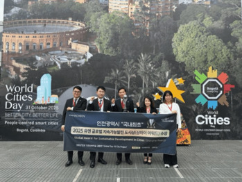 인천시가 유엔 산하기구가 선정하는 '2025 유엔 글로벌 지속가능발전 도시상'을 수상했다. 국내 도시는 인천이 처음이다.시는 10월 31일(현지시간) 콜롬비아 보고타에서 열린 ‘2025 세계 도시의 날 기념식’에서 ‘2025 UN 글로벌 지속가능발전 도시상’을 받았다고