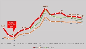 인천의 출생아 수 증가율이 지난해에 이어 올해도 17개 시도 중 가장 높은 것으로 나타났다. 유정복 시장 저출산 종합대책의 성과가 지속되고 있는 것으로 분석된다. 인천시는 올해 1∼8월 출생아 수가 지난해 같은 기간보다 10.8% 늘어 전국 최고 증가