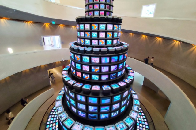 전시장에서 가장 먼저 만나게 되는 미술품은 백남준 작가의 ‘다다익선’이다. 1003대의 TV 모니터로 구성된 작품의 높이는 약 18.5m로 백남준 작품 중 최대 규모이다. ‘88 서울올림픽’을 기념하기 위해 1987년 설치했으며 이후 미술관의 상징이 됐다.